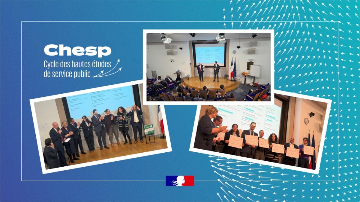 Développement des Talents Temps de lecture : 1 minute Clôture du CHESP : promotion 2025 Les auditeurs du Cycle des Hautes Études du Service Public (CHESP) ont suivi 12 mois d’apprentissage exigeant, d’échanges et de défis. Cette formation, conçue comme un levier stratégique de transformation de l’action publique, leur a permis de renforcer leurs compétences managériales et d’actualiser leurs connaissances de l’action publique et des grands enjeux contemporains. Partager la page Partager sur Facebook - nouvelle fenêtre Partager sur Twitter - nouvelle fenêtre Partager sur Linked In - nouvelle fenêtre Partager par email - nouvelle fenêtre Copier le lien dans le presse-papier Temps fort de cette journée de clôture, le « challenge de la transformation » a vu vingt auditeurs défendre leurs projets devant la promotion et un jury présidé par Isabelle Braun-Lemaire, déléguée interministérielle à l’encadrement supérieur de l’État.Les projets primés illustrent la diversité des enjeux : Prix du jury : Éric Collard (« Sauver des vies en mobilisant des citoyens sauveteurs »), Sara-Lou Gerber (« Pas sang vous », Établissement français du sang), Stéphanie Quéré (« Plan Corbières – écoutes territoriales ») Prix coup de cœur du jury : Diane Dupré la Tour (« Oser le prix libre dans le service public ») Prix de la promotion : Benjamin Alla (« La justice décodée »), Valérie Maureille (« Protection des enquêteurs en charge de la lutte contre l’inceste »), Jean-Gabriel Delacroy (« Sgharmonie ») Ils repartent encore plus engagés, mieux armés et plus confiants pour conduire une action publique plus efficace, plus simple et plus proche des citoyens.Et maintenant ? À chaque auditeur de faire vivre ses apprentissages, de les partager avec ses équipes et d’ancrer durablement ces dynamiques de transformation au cœur de l’action publique. Des échanges riches et structurants pour l’ensemble de la promotion. Pour en savoir plus sur le CHESP