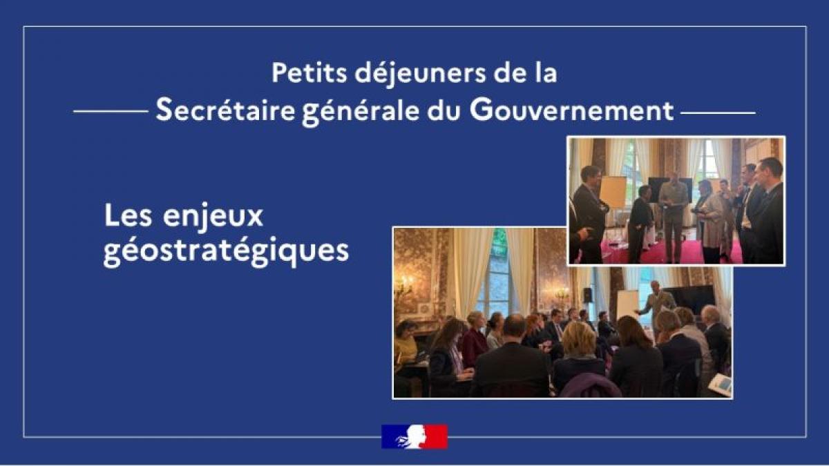 Petit-déjeuner de la SGG Temps de lecture : 1 minute Petit-déjeuner de la Secrétaire générale du Gouvernement (SGG) sur les enjeux géostratégiques Les petits-déjeuners de la SGG sont une occasion, pour les cadres dirigeants qui le souhaitent, de se retrouver autour de thématiques de management ou en lien avec des enjeux d’actualité. Partager la page Partager sur Facebook - nouvelle fenêtre Partager sur Twitter - nouvelle fenêtre Partager sur Linked In - nouvelle fenêtre Partager par email - nouvelle fenêtre Copier le lien dans le presse-papier Invité de cette rencontre, le général d’armée Pierre Schill, chef d’état-major de l’armée de Terre a partagé son analyse d’un monde en profonde transformation à la fois stratégique, culturelle et technologique. Il a mis en lumière les évolutions qui façonnent une armée de Terre à la fois stratégique, innovante et soudée, au service de la France. Une présentation qui fait écho à son livre Le sens du commandement, paru en septembre dernier, dans lequel il détaille une armée guidée par les finalités plutôt que par les seules modalités d’action, et portée par un style de commandement.Cette intervention a suscité un vif intérêt de la part des cadres dirigeants, leur permettant d’approfondir les enjeux de la revue nationale stratégique et les implications dans les différentes politiques publiques. L’occasion d’évoquer également les différentes formes d’engagement et le rôle essentiel de la réserve.Un temps d’échange riche et éclairant, qui contribue à renforcer la résilience de l’État, l’anticipation collective et la cohésion. Pour en savoir plus sur les petits déjeuners de la SGG